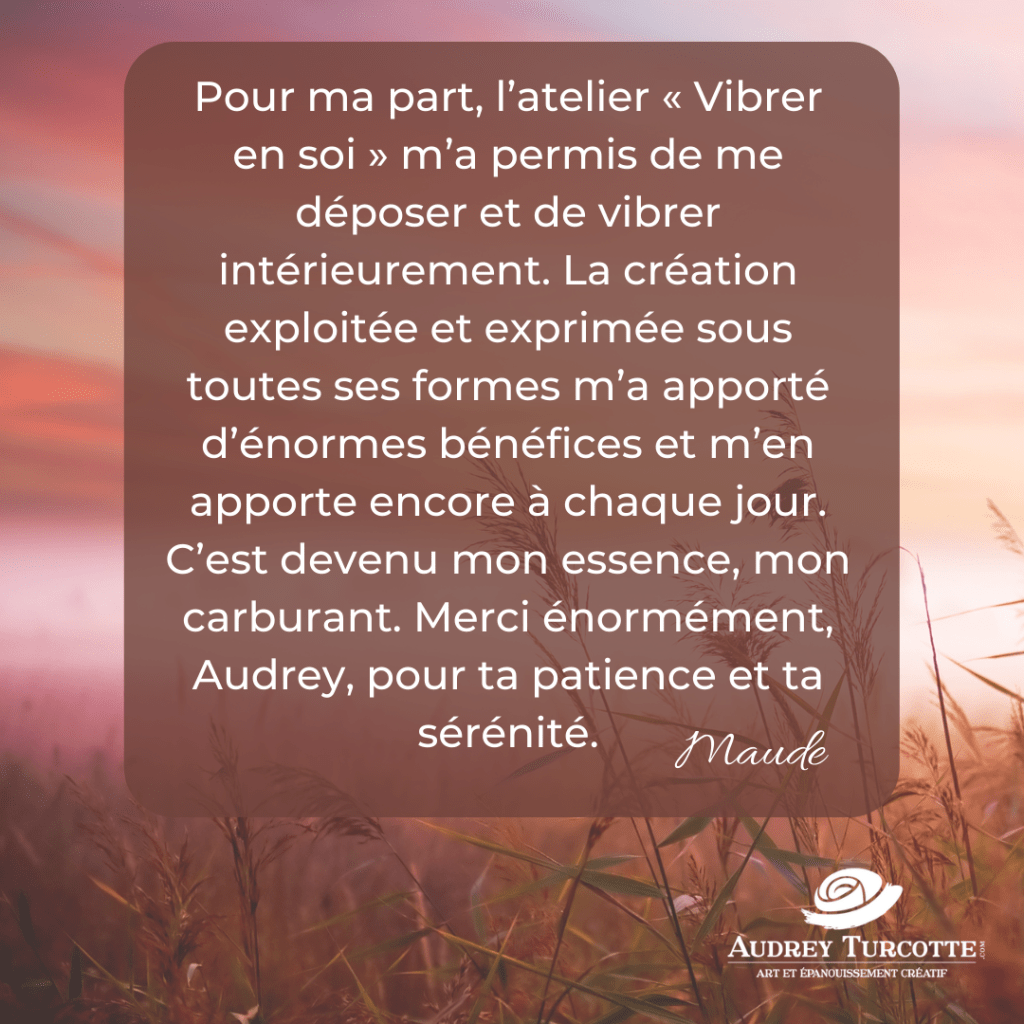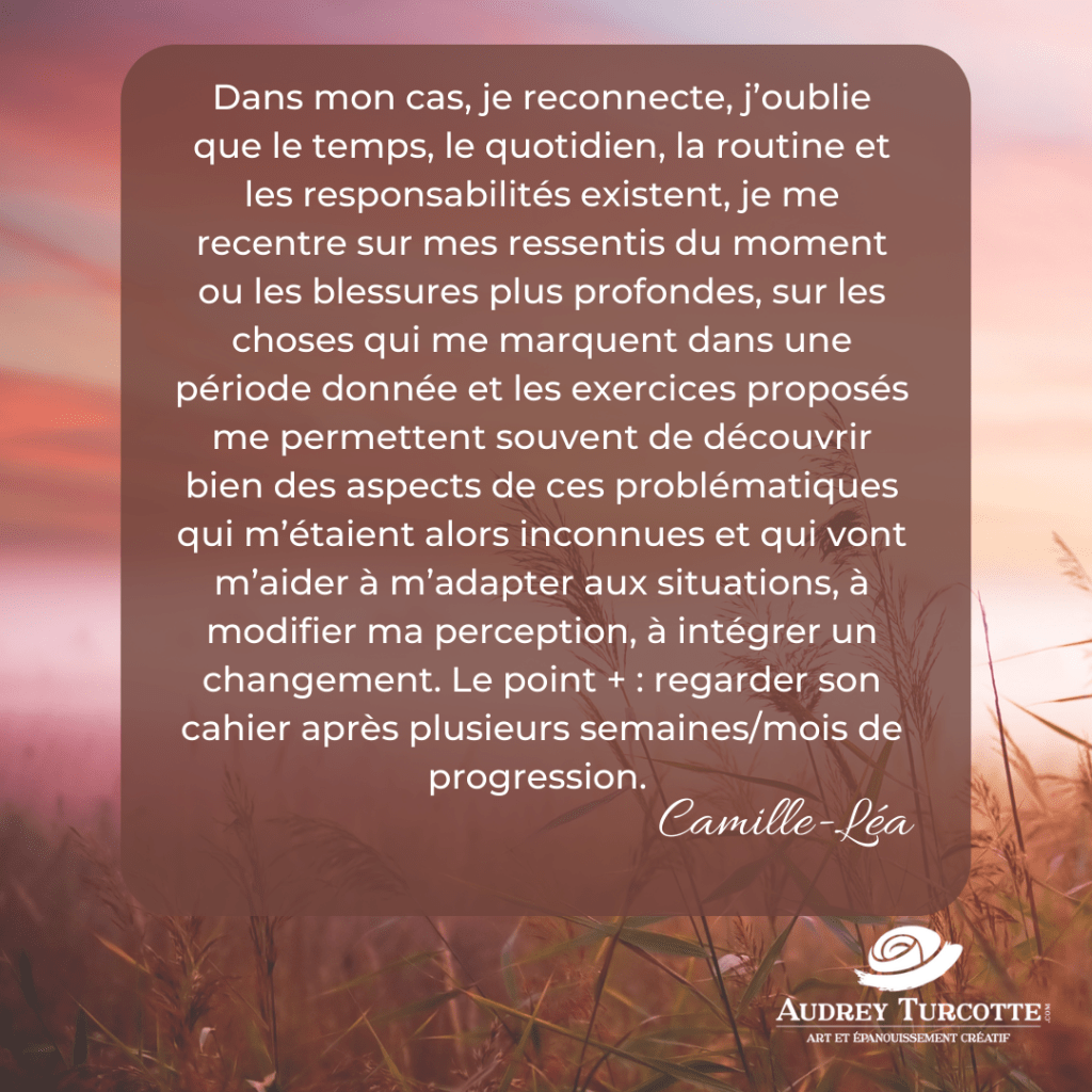 C’est exactement pour ça que j’accompagne les femmes à revenir vers elles et à s’exprimer à l’aide du journal créatif™, afin qu’elles puissent vibrer en elles.